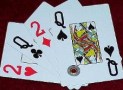 Un efecto de magia impromptu con un paquete de cartas y una ...