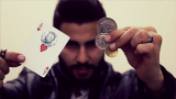 Una moneda firmada penetra en la baraja justo en la carta ...