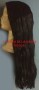 Peluca larga lacia negra cabello sintético sin copete, foto ...
