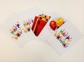 Cuatro cartas con "Feliz cumpleaños" impresas se ...