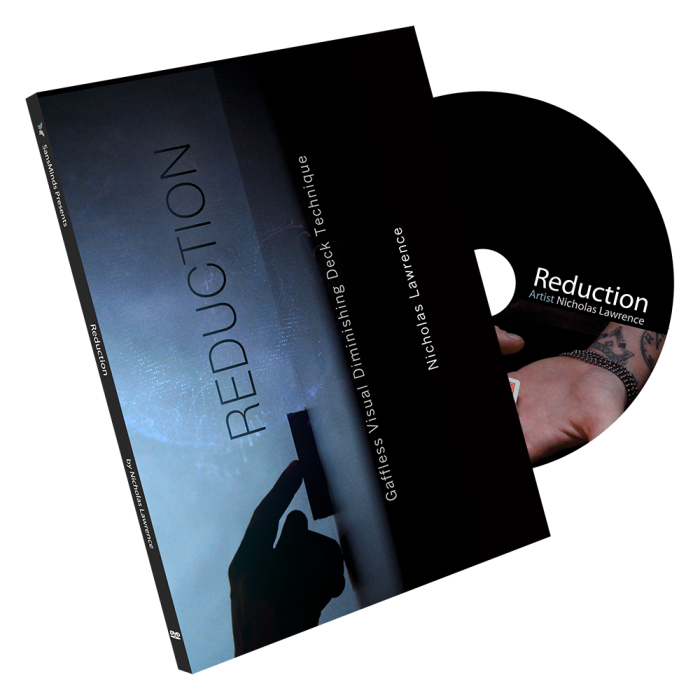 "Una ingeniosa idea que ciertamente funciona y es una bella revelación. Lo mas lento que reduzcas la baraja mas fuerte se ve la ilusión" -Paul Romhany, *Revisiones de Vanish Magazine. Cada vez en mucho tiempo un principio es descubierto. Reduction es un revolucionario acercamiento a mejorar un clásico en la magia. De la mente de Nicholas Lawrence, un ingenioso método es presentado para mostrar un efecto de visual de disminución sin el uso de gimmicks. Imagina sacar unas cartas de un paquete y dejarla sobre la mesa. Dejas que el espectador seleccione un valor. Mientras colocas tus dedos encima de la baraja y suavemente frotas las cartas, el grueso de la baraja se vuelve mas y mas delgado. Inmediatamente extiendes las cartas sobrantes y muestras que todos los valores han desaparecido excepto el valor elegido. Un misterio visual que es simple y poderoso. Video en inglés.