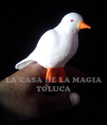 Paloma de hule plástico para aparecerla o desaparecerla! Puedes colocarla cómodamente en tu mano como se muestra en la imágen la cual es la real del producto mencionado.