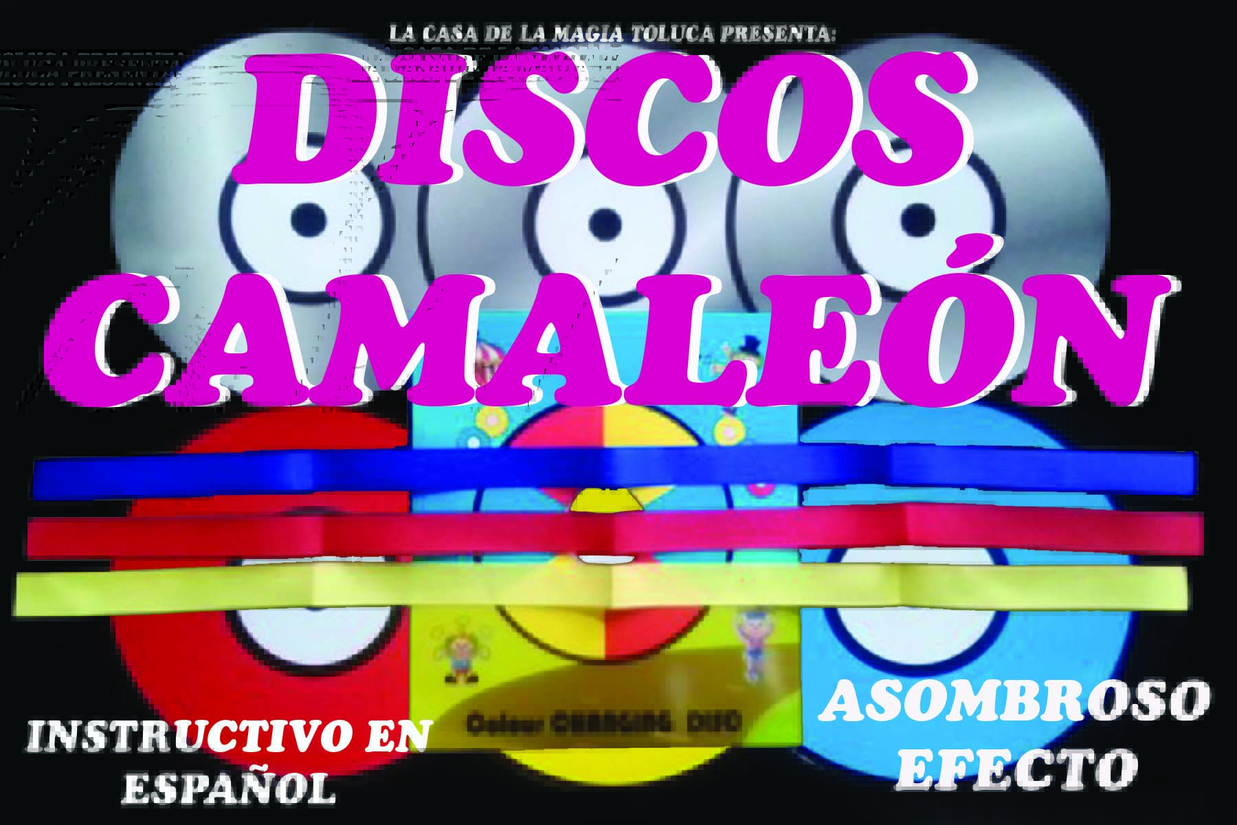 EFECTO: Se muestran tres discos de color negro al público, uno a uno por ambos lados. Cada uno de los discos se coloca en una funda a su medida, posteriormente se pasa un listón de color hasta la mitad y se deja colgando en el mismo. Cuando el disco es retirado de la funda, éste ha cambiado al mismo color que el listón. Al final el mago termina con tres discos de vistosos colores. Fácil de hacer. Instructivo en español con fotografías.