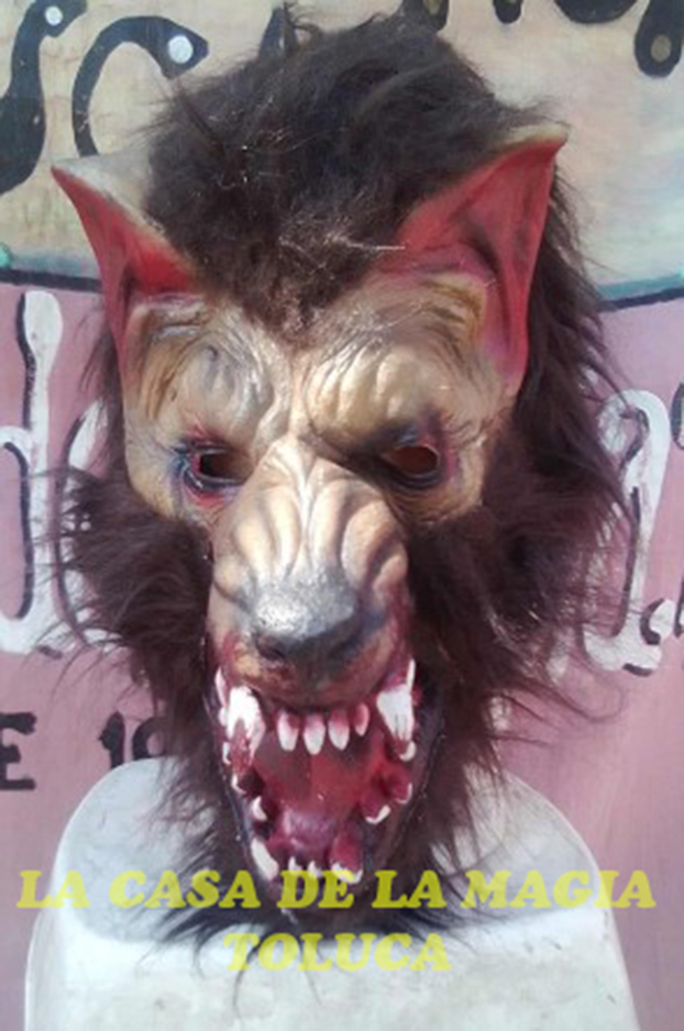 Máscara de Lobo. Unitalla para niño/adulto. Elaborada en látex e incrustacion de peluche. Foto real del producto.