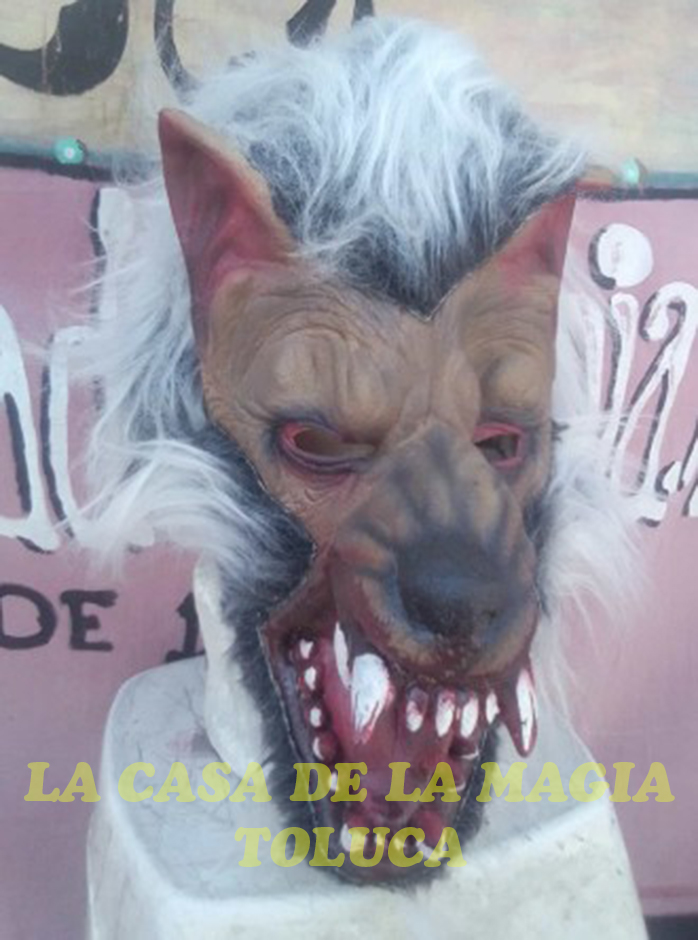 Máscara de Lobo. Unitalla para niño/adulto. Elaborada en látex e incrustacion de peluche. Foto real del producto.